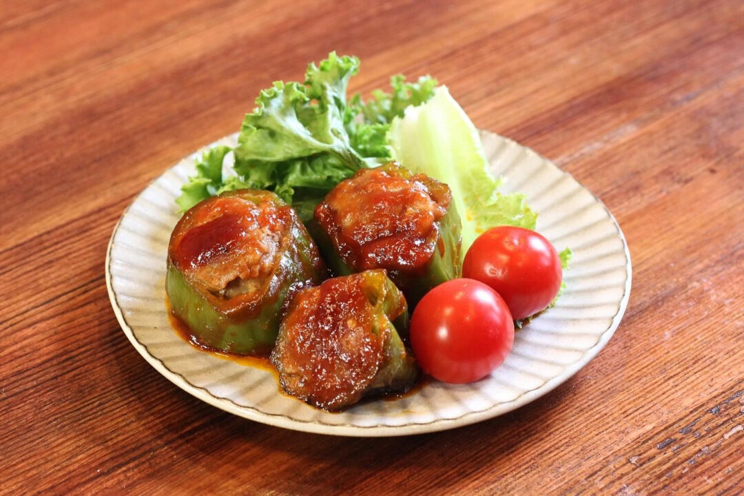 通常のピーマンの肉詰めとは違い縦ではなく横にカット